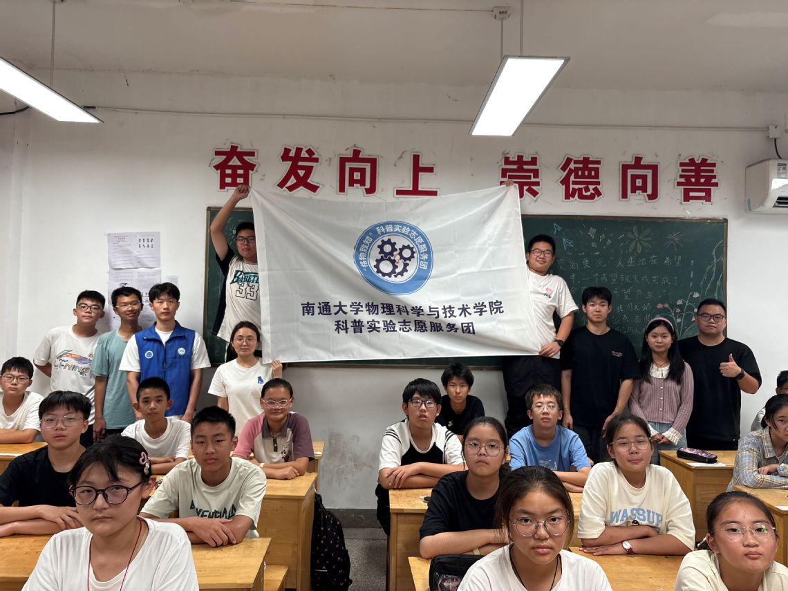为持续深化校地协同育人机制,激发青少年对物理科学的浓厚兴趣,10月13日,香港a片 “格物致知”科普实验志愿服务团走进南通市通州区平潮实验初中,面向初一年级学生开展了一场别开生面的科普实践活动。本次活动以“格物见真趣 致知启新程”为主题,通过一系列妙趣横生、寓教于乐的物理实验,点燃了同学们探索物理科学的热情。
