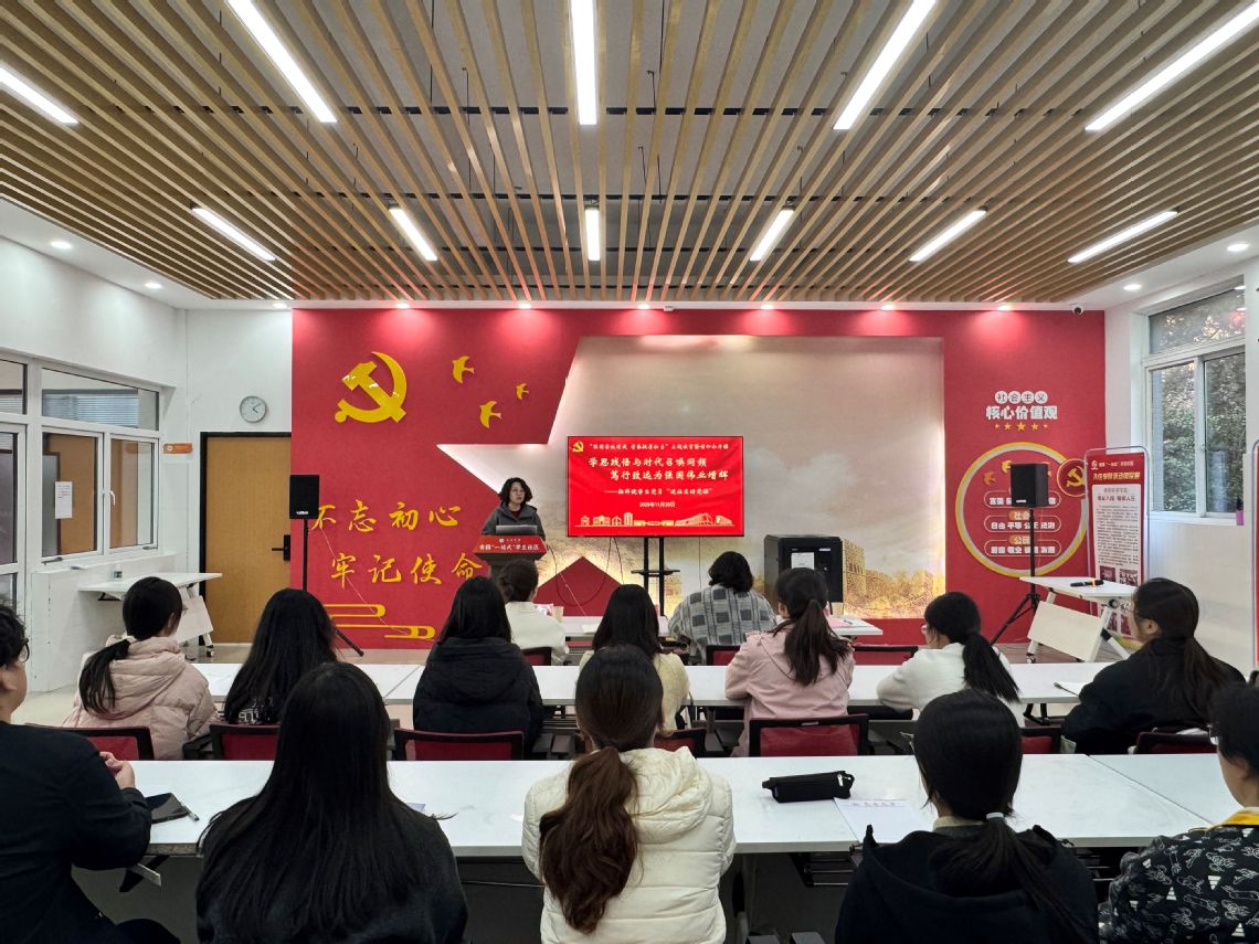 为深入学习贯彻党的二十届四中全会精神,强化学生党员与入党积极分子党性修养,推动党的创新理论落地生根,11月20日,香港a片 在秀园“一站式”学生社区党建之家举办“学思践悟与时代召唤同频 笃行致远为强国伟业增辉”学生党员“进社区讲党课”活动。学院党总支书记徐凌出席活动并讲话。